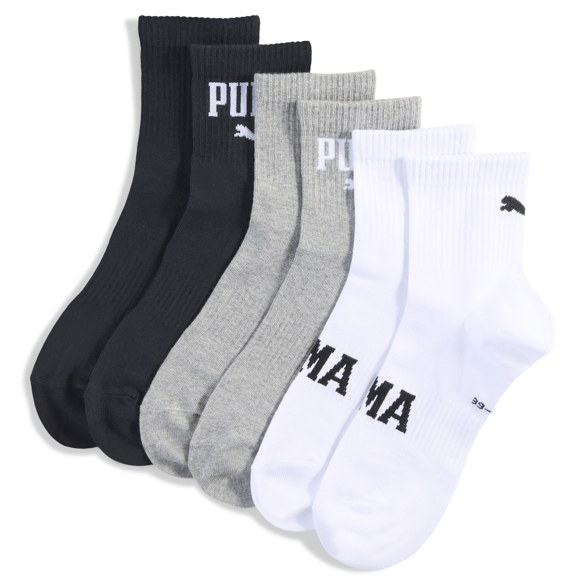 PUMA Korte uniseks crewsokken met logo (set van 3), Zwart/Grijs/Wit, Maat 35-38