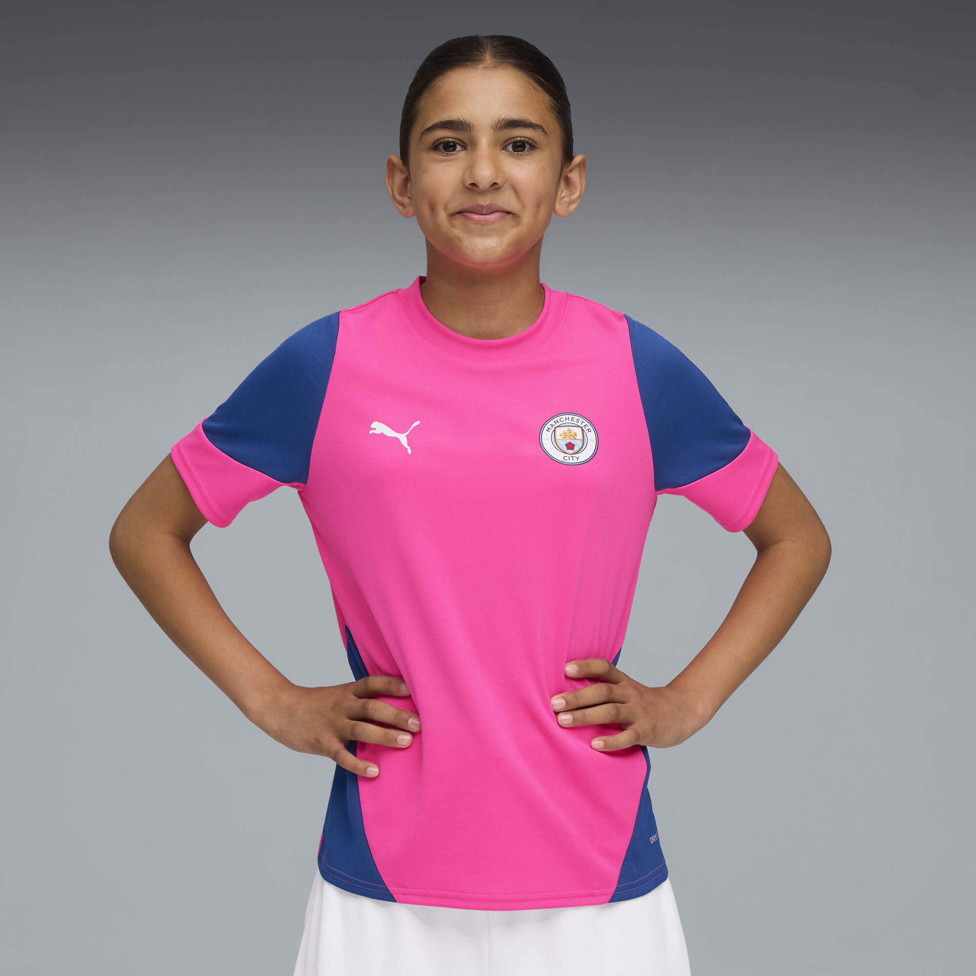 PUMA Manchester City trainingsshirt, Blauw/Roze, Maat 9-10Y