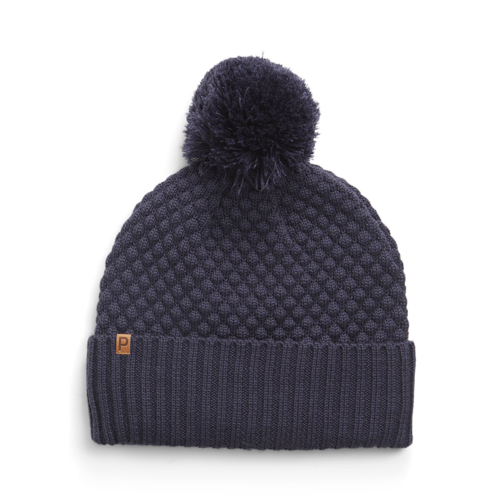 PRODUCTVERHAAL Draag deze beanie en blijf warm op de golfbaan deze winter. Hij heeft een afneembare pompon bovenop en een voering die je het hele 18-holes parcours warm houdt. Materiaal met fleece voering voor optimale warmte Klemlabel met geborduurde P Ribgebreid patroon zonder zijnaden Top Pom